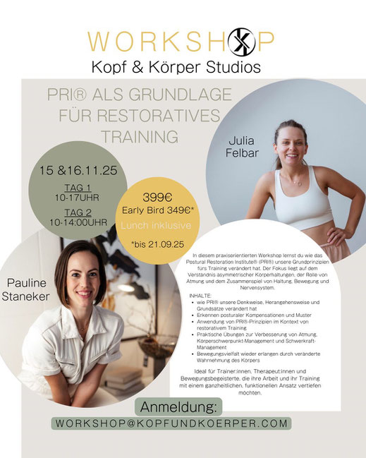 Mit meinen neuen Online-Klassen möchte ich die Grundprinzipien menschlicher Bewegung (atmen und gehen) in Gruppenklassen und Krafttraining übersetzen. Monatlich wechselnd wird es neue Themen geben - ein guter Einstieg ins Training nachdem erste Erfolge mit PRI erzielt wurden und für alle, die das Gefühl haben, dass Mainstream-Fitness für sie nicht funktioniert.